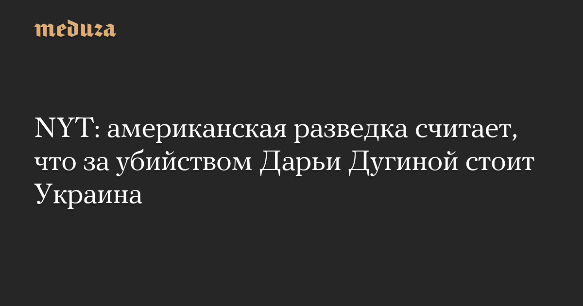 NYT: американская разведка считает, что за убийством Дарьи Дугиной стоит Украина