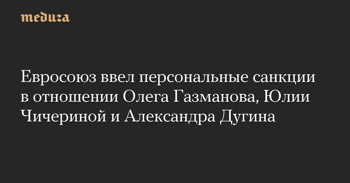 Персональные санкции в рамках восьмого пакета ЕС также ввел в отношении философа Александра Дугина и президента концерна «Калашникова» Алана Лушникова.