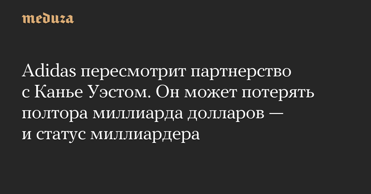 Adidas пересмотрит партнерство с Канье Уэстом. Он может потерять полтора миллиарда долларов — и статус миллиардера