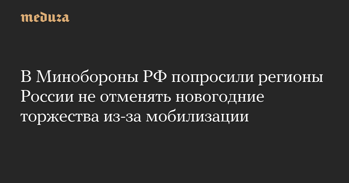 В Минобороны РФ попросили регионы России не отменять новогодние торжества из-за мобилизации
