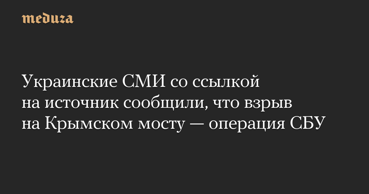 Украинские СМИ со ссылкой на источник сообщили, что взрыв на Крымском мосту — операция СБУ