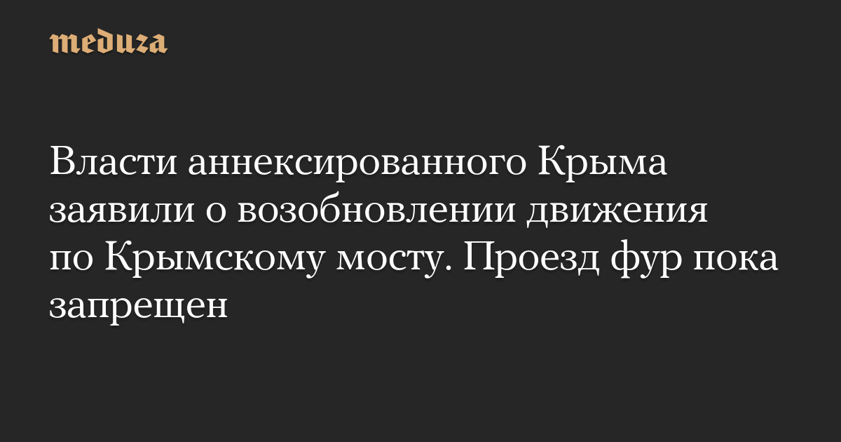 Власти аннексированного Крыма заявили о возобновлении движения по Крымскому мосту. Проезд фур пока запрещен