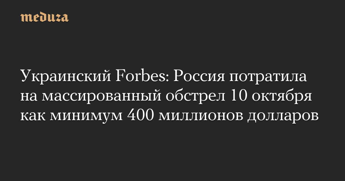 Украинский Forbes: Россия потратила на массированный обстрел 10 октября как минимум 400 миллионов долларов