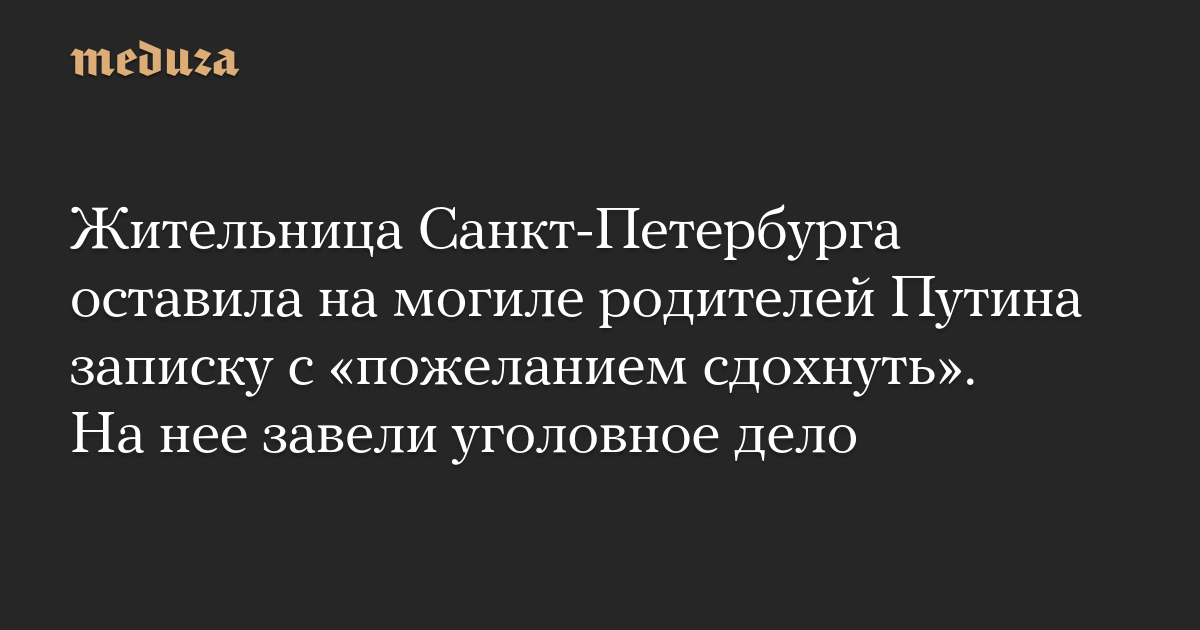 Жительница Санкт-Петербурга оставила на могиле родителей Путина записку с «пожеланием сдохнуть». На нее завели уголовное дело
