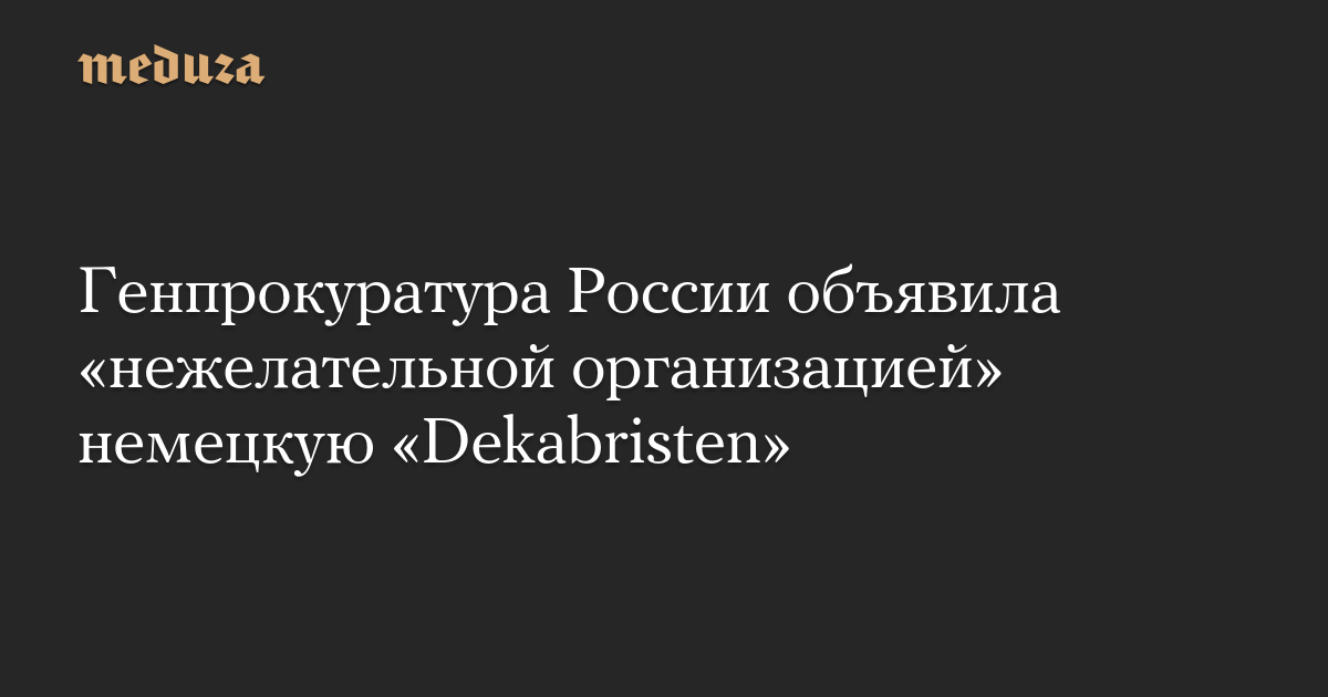 Генпрокуратура России объявила «нежелательной» на территории страны деятельность немецкой неправительственной организации Dekabristen e.V. («Декабристы»). Об этом сообщила пресс-служба ведомства.