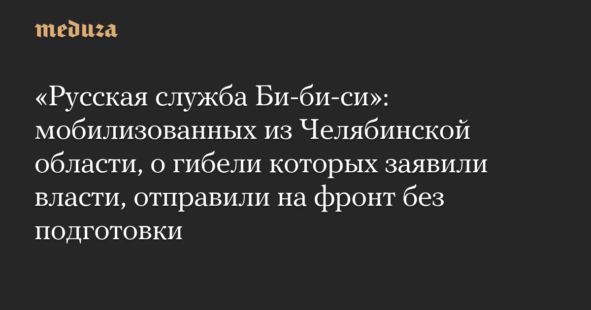 «Русская служба Би-би-си»: мобилизованных из Челябинской области, о гибели которых заявили власти, отправили на фронт без подготовки