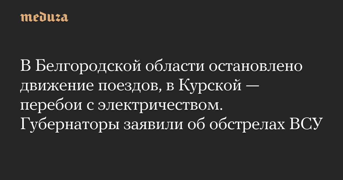 В Белгородской области остановлено движение поездов, в Курской — перебои с электричеством. Губернаторы заявили об обстрелах ВСУ