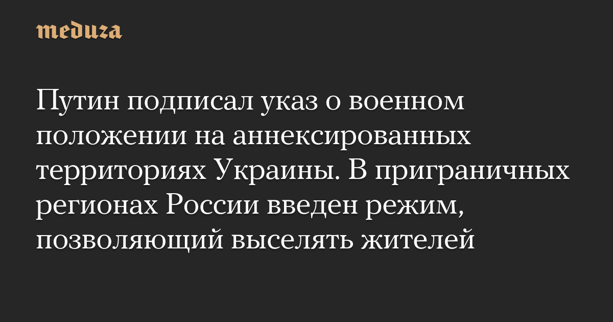 Путин подписал указ о военном положении на аннексированных территориях Украины. В приграничных регионах России введен режим, позволяющий выселять жителей