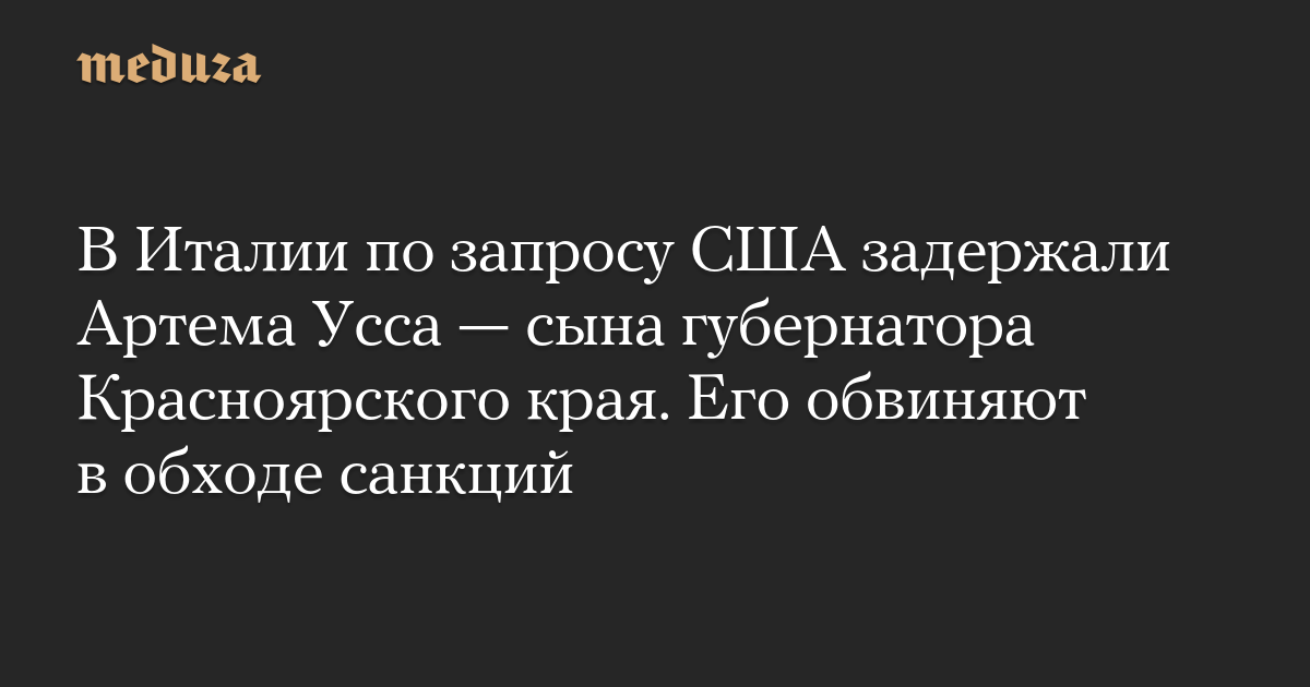 В Италии по запросу США задержали Артема Усса — сына губернатора Красноярского края. Его обвиняют в обходе санкций