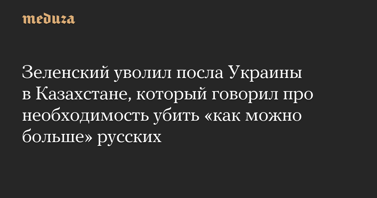 Зеленский уволил посла Украины в Казахстане, который говорил про необходимость убить «как можно больше» русских