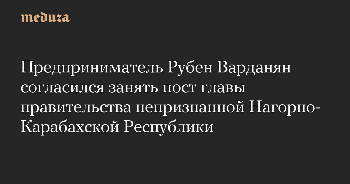 Предприниматель Рубен Варданян согласился занять пост главы правительства непризнанной Нагорно-Карабахской Республики
