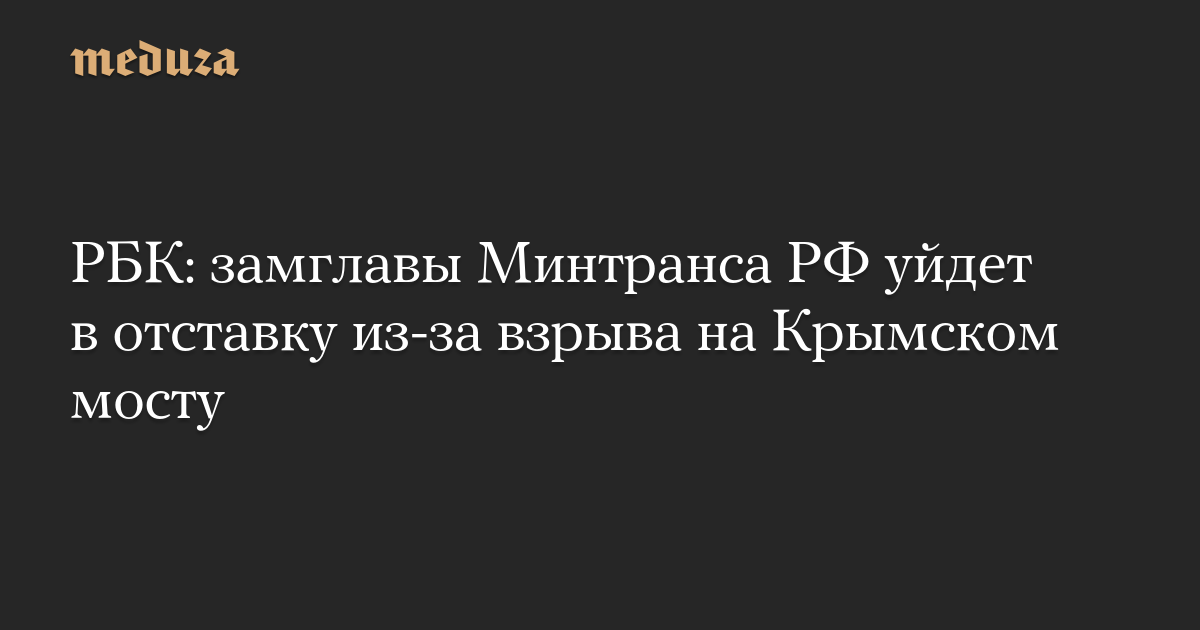 РБК: замглавы Минтранса РФ уйдет в отставку из-за взрыва на Крымском мосту
