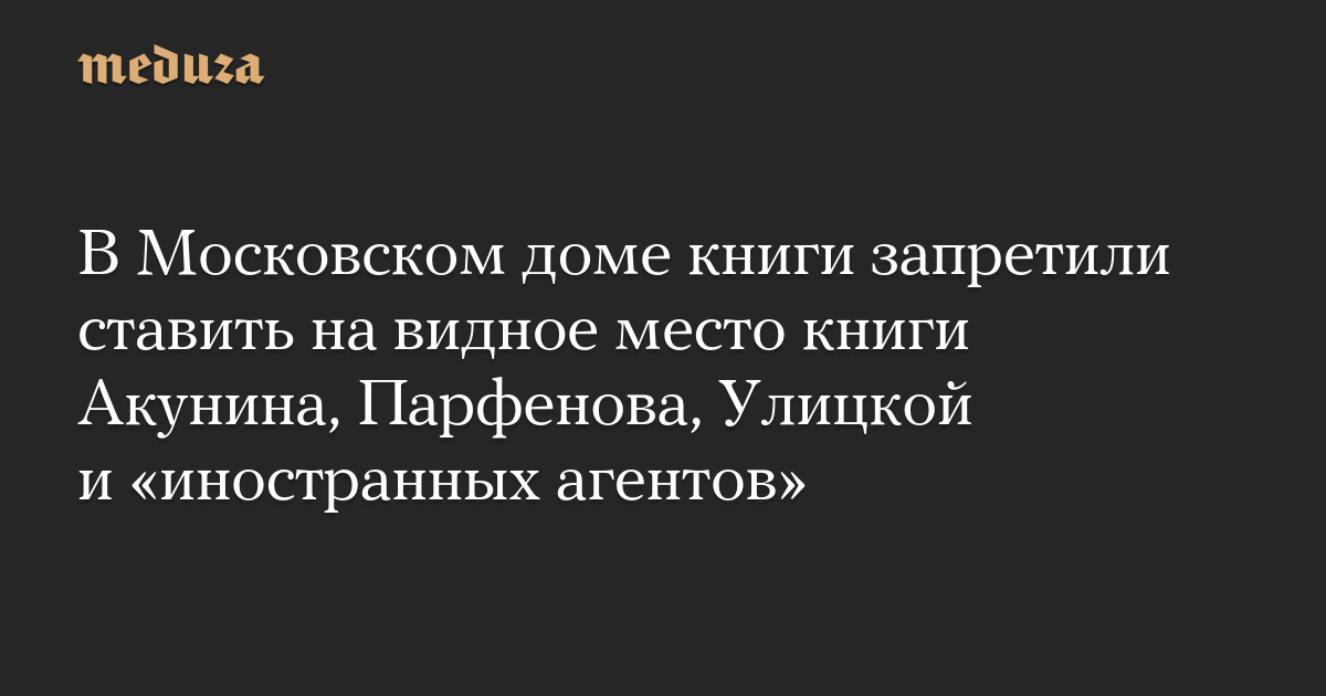 В Московском доме книги запретили ставить на видное место книги Акунина, Парфенова, Улицкой и «иностранных агентов»