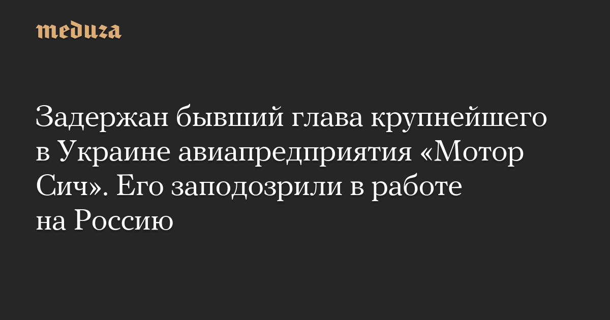 Задержан бывший глава крупнейшего в Украине авиапредприятия «Мотор Сич». Его заподозрили в работе на Россию