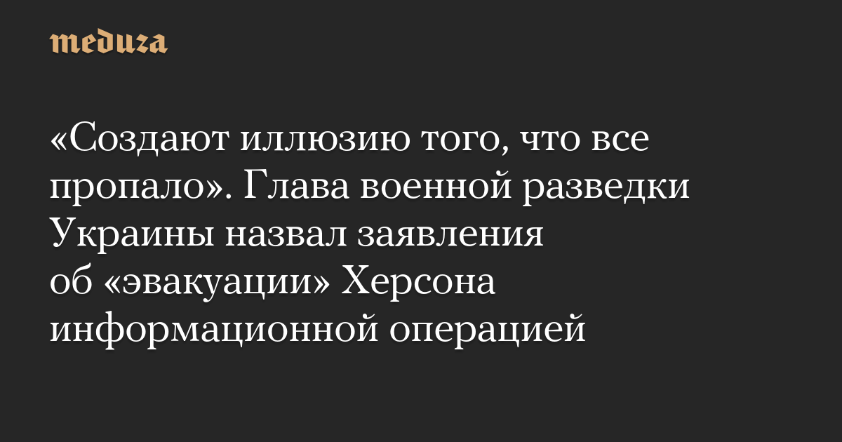 «Создают иллюзию того, что все пропало». Глава военной разведки Украины назвал заявления об «эвакуации» Херсона информационной операцией