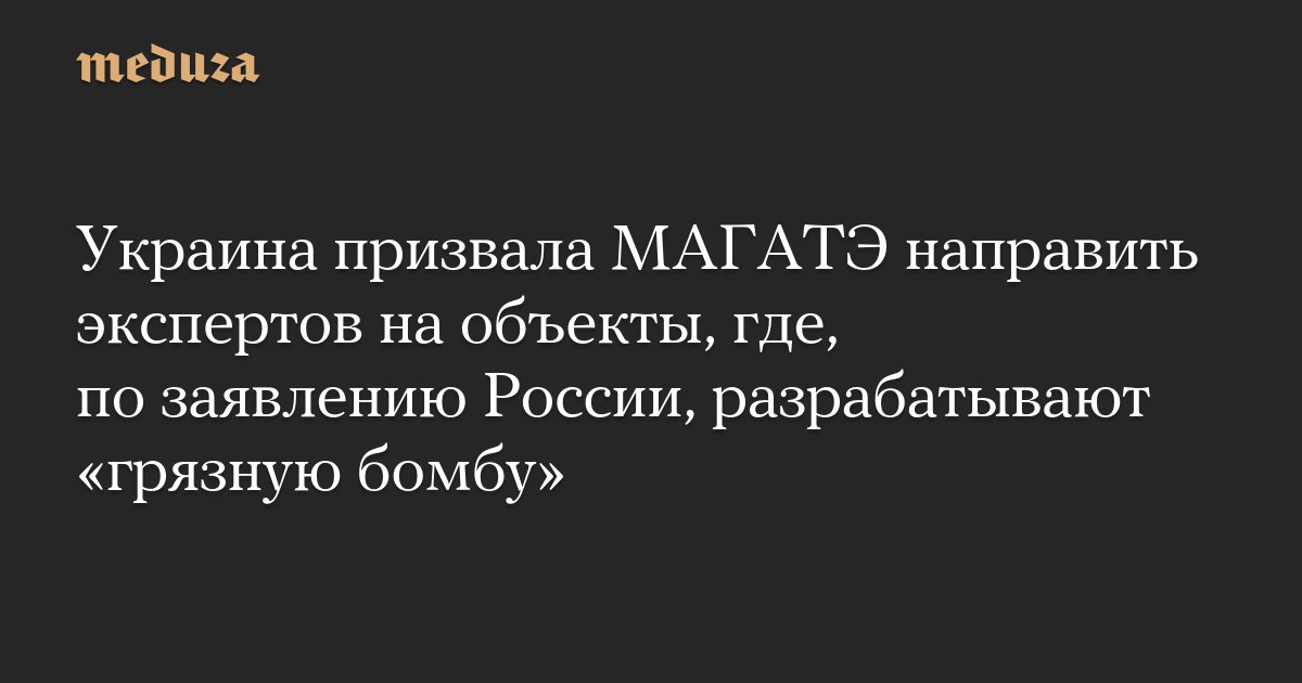Украина призвала МАГАТЭ направить экспертов на объекты, где, по заявлению России, разрабатывают «грязную бомбу»
