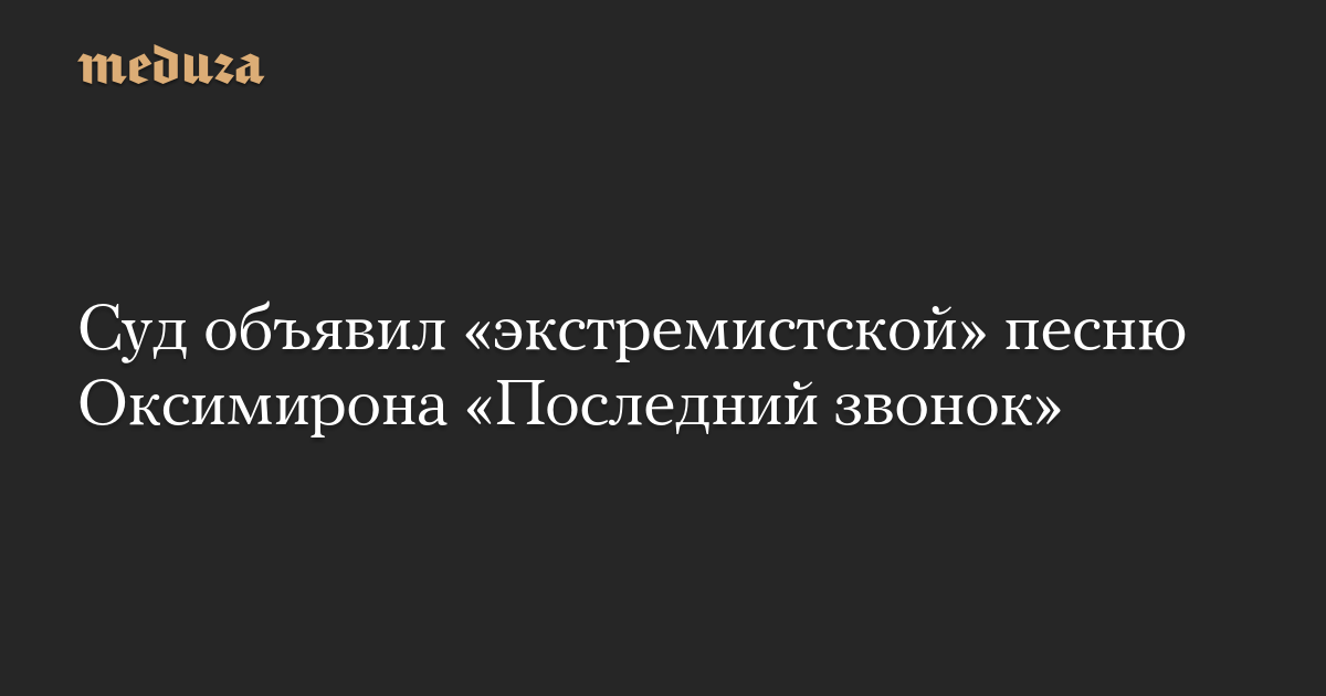 Замоскворецкий суд Москвы удовлетворил иск городской прокуратуры и объявил «экстремистской» песню рэпера Оксимирона «Последний звонок». Об этом пишет РИА Новости.