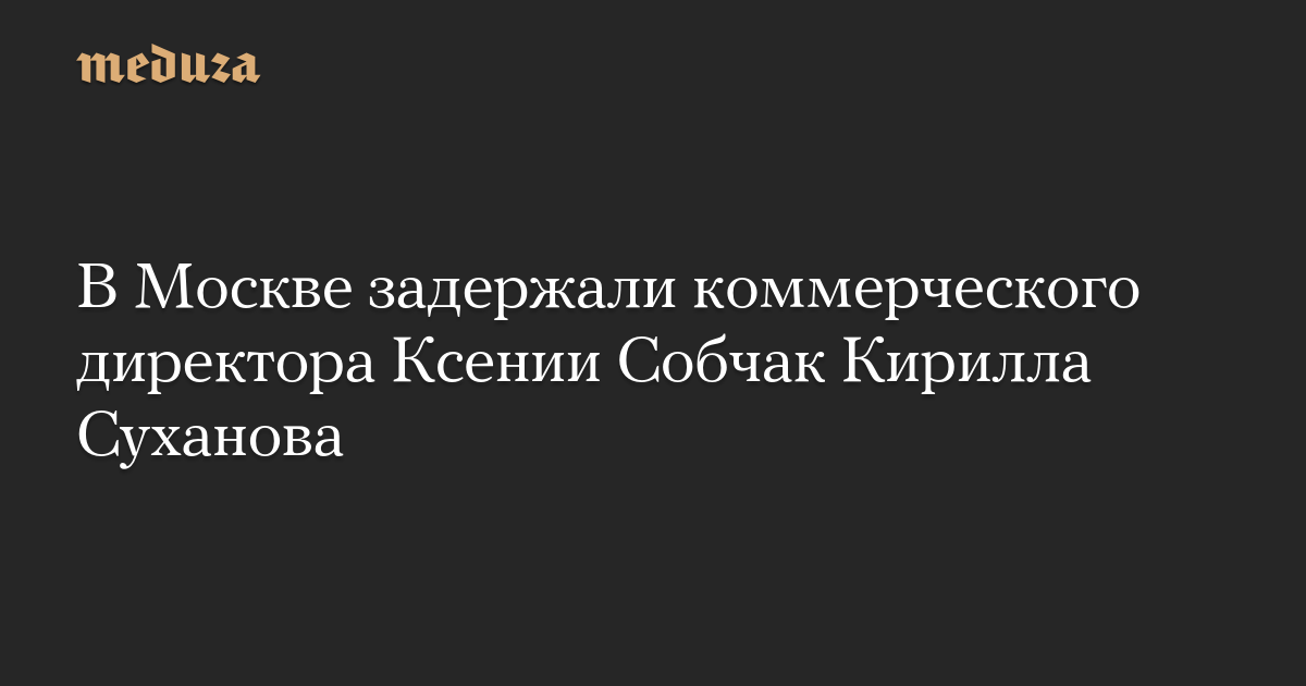 В Москве задержан коммерческий директор медиахолдинга «Oсторожно Media» журналистки Ксении Собчак Кирилл Суханов. Об этом сообщает ТАСС.