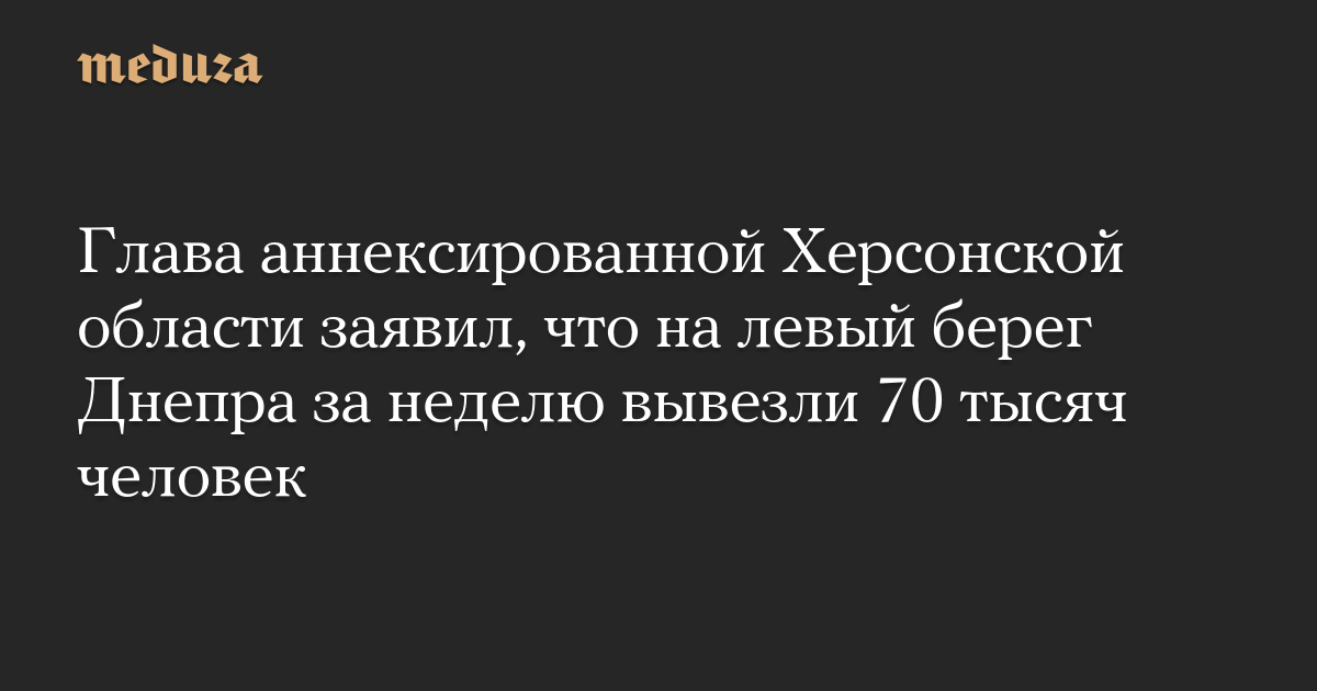 Глава аннексированной Херсонской области заявил, что на левый берег Днепра за неделю вывезли 70 тысяч человек