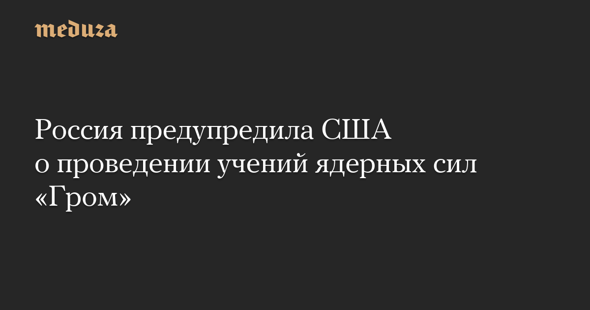 Власти России уведомили министерство обороны США о том, что собираются провести учения стратегических ядерных сил «Гром», сообщил в ходе брифинга для прессы пресс-секретарь Пентагона Патрик Райдер.