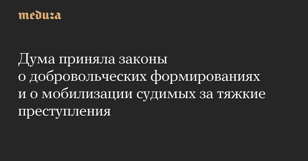 Дума приняла законы о добровольческих формированиях и о мобилизации судимых за тяжкие преступления