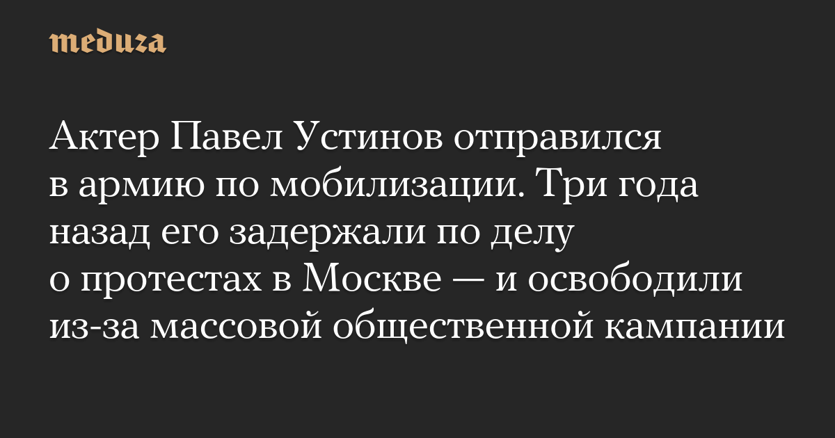 Актер Павел Устинов отправился в армию по мобилизации. Три года назад его задержали по делу о протестах в Москве — и освободили из-за массовой общественной кампании