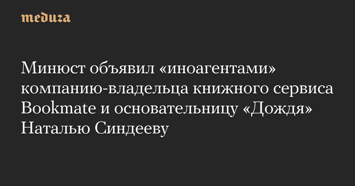 Минюст объявил «иноагентами» компанию-владельца книжного сервиса Bookmate и основательницу «Дождя» Наталью Синдееву