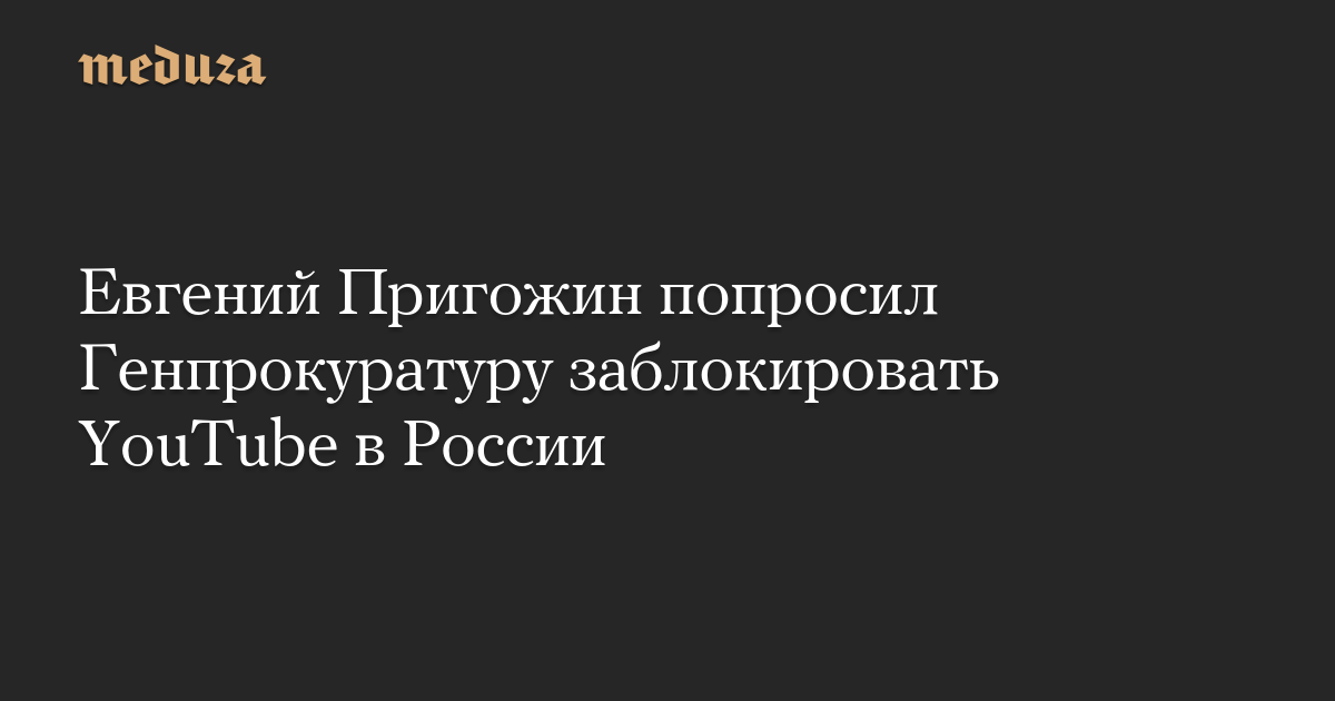Евгений Пригожин попросил Генпрокуратуру заблокировать YouTube в России