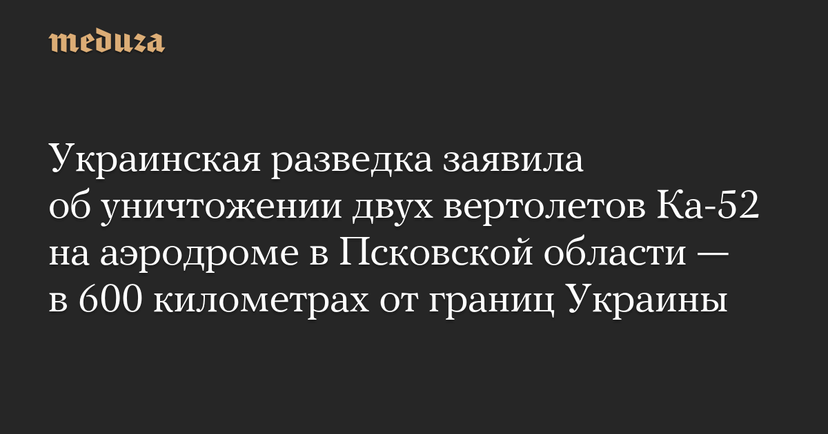 Украинская разведка заявила об уничтожении двух вертолетов Ка-52 на аэродроме в Псковской области — в 600 километрах от границ Украины