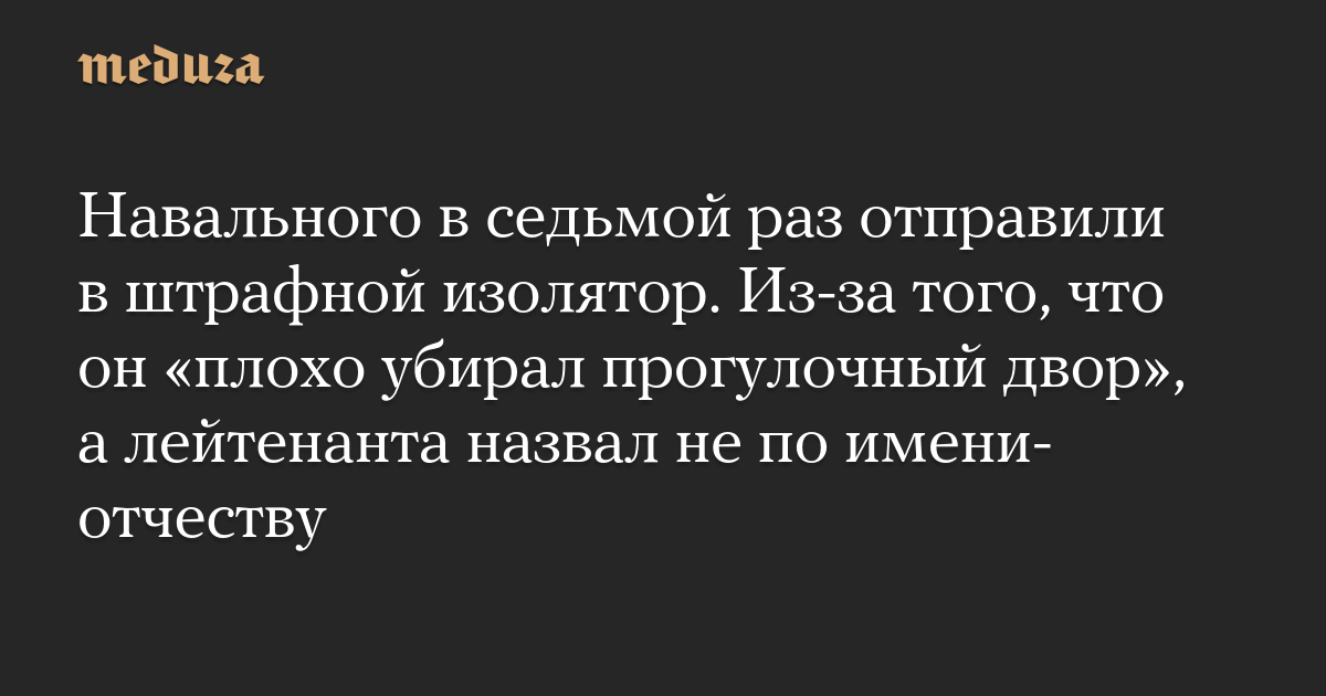 Навального в седьмой раз отправили в штрафной изолятор. Из-за того, что он «плохо убирал прогулочный двор», а лейтенанта назвал не по имени-отчеству