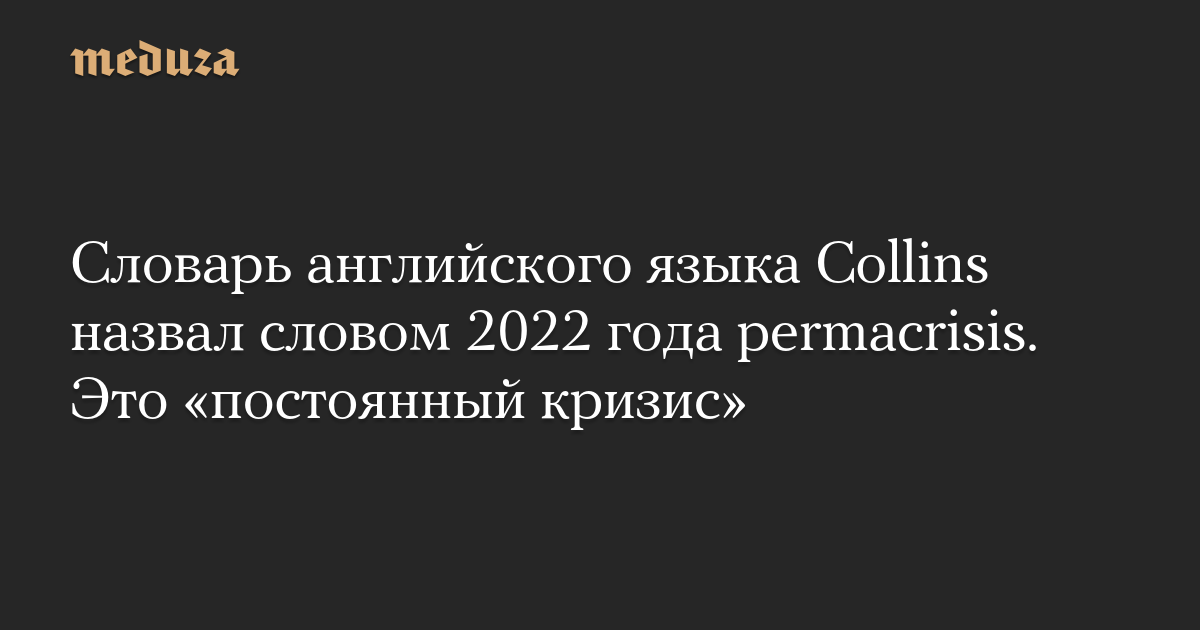 Словарь английского языка Collins назвал словом 2022 года permacrisis. Это «постоянный кризис»