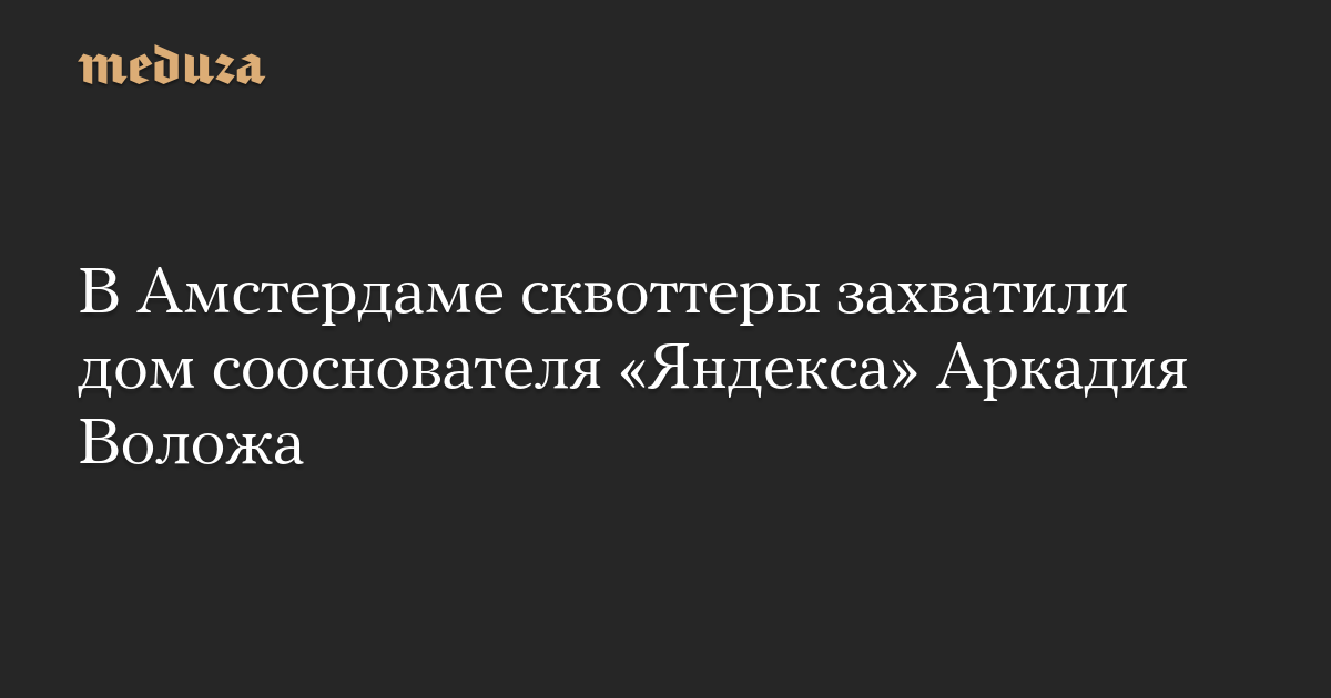 В Амстердаме группа сквоттеров заселилась в дом Аркадия Воложа, сооснователя и бывшего генерального директора «Яндекса». Об этом активисты сообщили на IndyMedia.