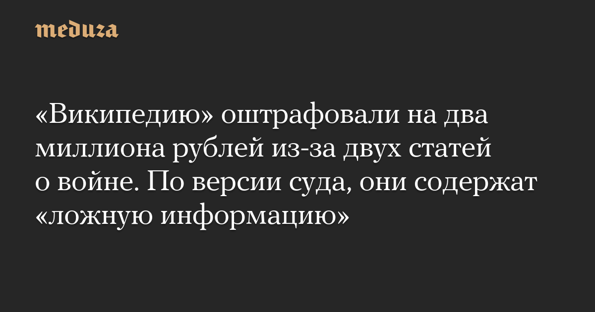 «Википедию» оштрафовали на два миллиона рублей из-за двух статей о войне. По версии суда, они содержат «ложную информацию»