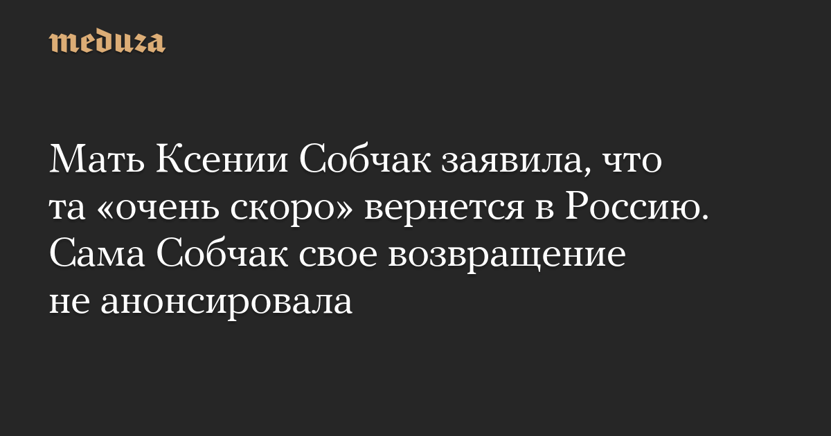 Мать Ксении Собчак заявила, что та «очень скоро» вернется в Россию. Сама Собчак свое возвращение не анонсировала