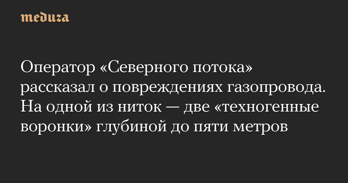 Оператор «Северного потока» рассказал о повреждениях газопровода. На одной из ниток — две «техногенные воронки» глубиной до пяти метров