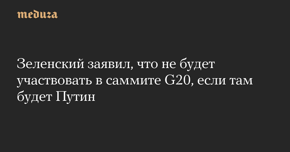 Зеленский заявил, что не будет участвовать в саммите G20, если там будет Путин