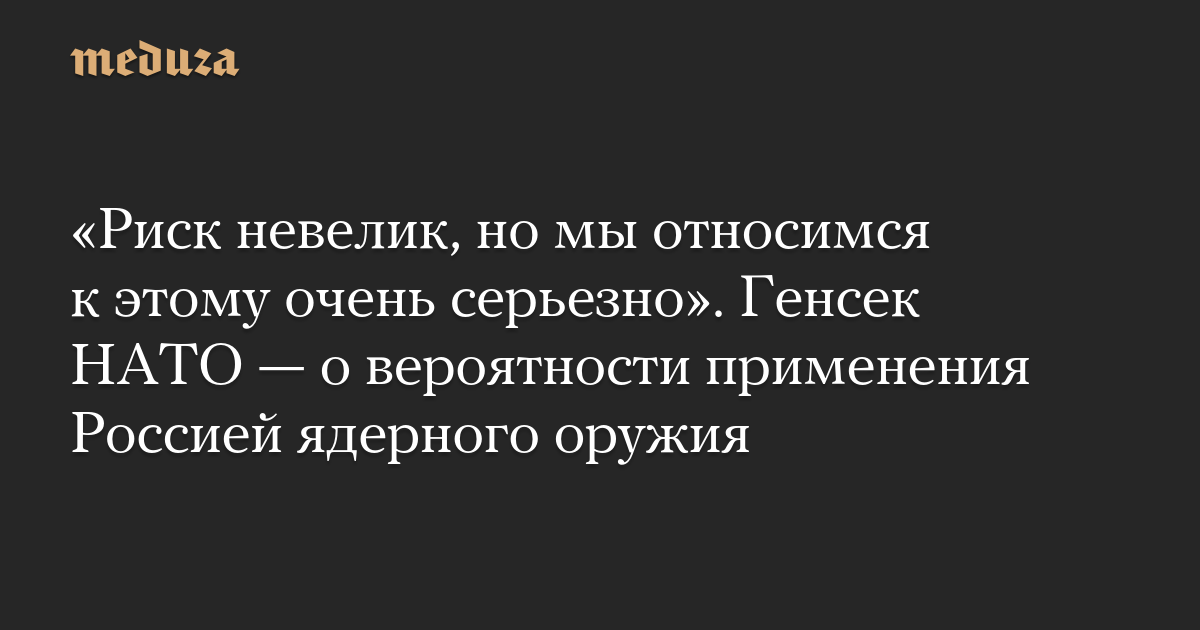 «Риск применения Россией ядерного оружия в Украине невелик, но последствия будут огромными, поэтому мы относимся к этому очень серьезно», — заявил генсек.