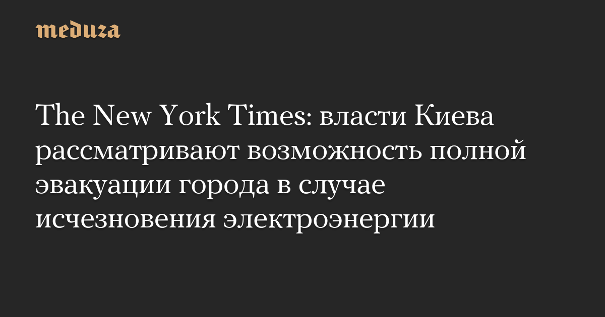 The New York Times: власти Киева рассматривают возможность полной эвакуации города в случае исчезновения электроэнергии