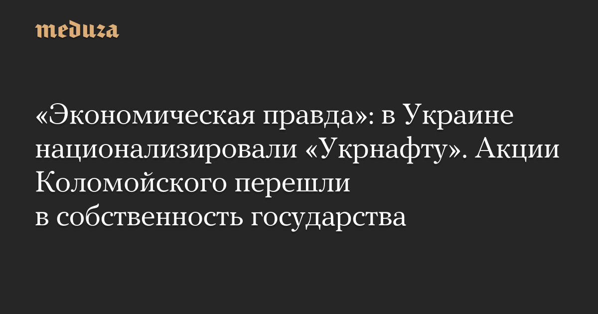 «Экономическая правда»: в Украине национализировали «Укрнафту». Акции Коломойского перешли в собственность государства