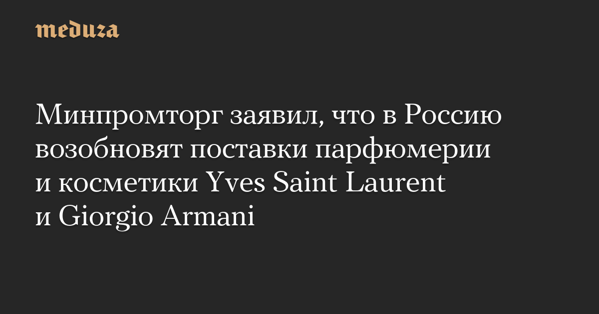 Минпромторг заявил, что в Россию возобновят поставки парфюмерии и косметики Yves Saint Laurent и Giorgio Armani