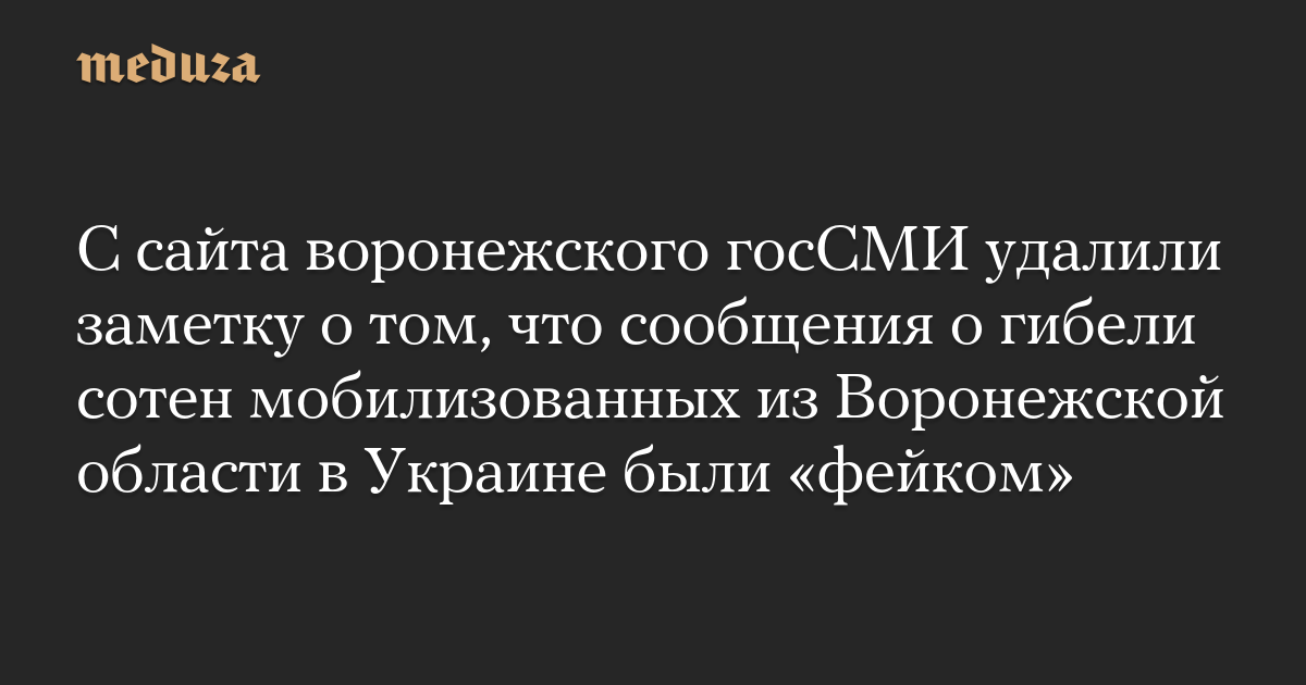 С сайта воронежского госСМИ удалили заметку о том, что сообщения о гибели сотен мобилизованных из Воронежской области в Украине были «фейком»