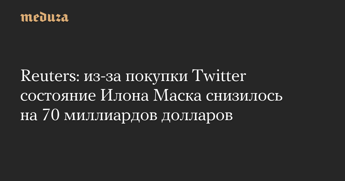 Состояние Илона Маска с момента, когда в апреле он объявил о намерении приобрести соцсеть Twitter, снизилось на 70 миллиардов долларов, подсчитало агентство Reuters.