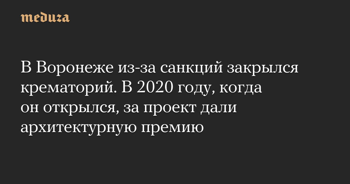 В Воронеже из-за санкций закрылся крематорий. В 2020 году, когда он открылся, за проект дали архитектурную премию