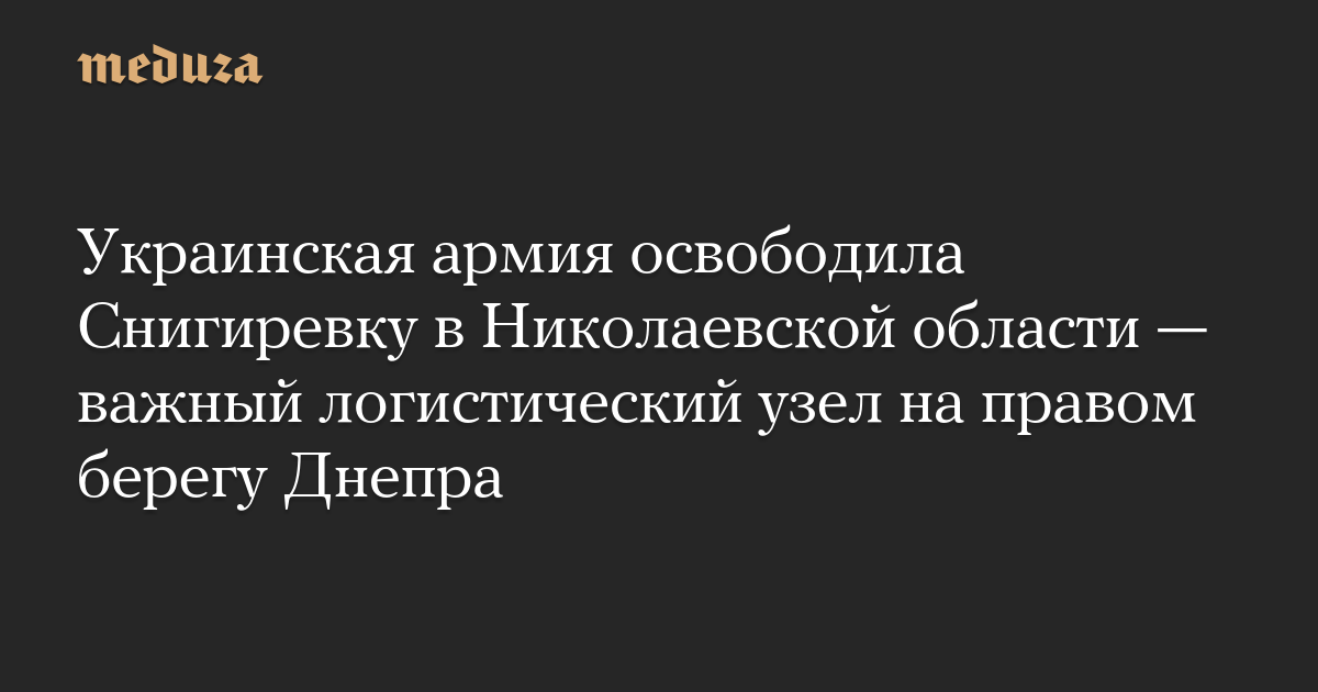 Вооруженные силы Украины, вероятно, освободили город Снигиревка в Николаевской области.