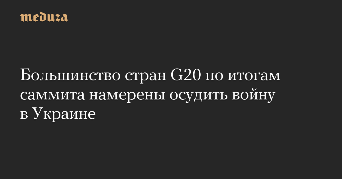 Большинство участников саммита «Большой двадцатки» решительно осудили войну в Украине. Об этом говорится в проекте совместного заявления лидеров G20 по итогам встречи.
