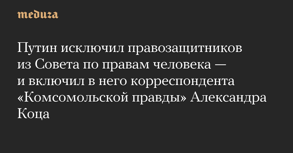 Путин исключил правозащитников из Совета по правам человека — и включил в него корреспондента «Комсомольской правды» Александра Коца
