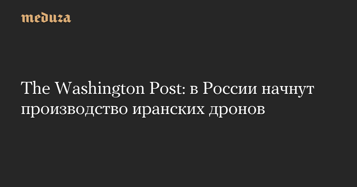 Получив собственную линию по сборке иранских дронов, Россия сможет значительно увеличить запасы относительно недорогих, но очень разрушительных беспилотников, которые в последние недели изменили характер войны в Украине (англ. яз.)