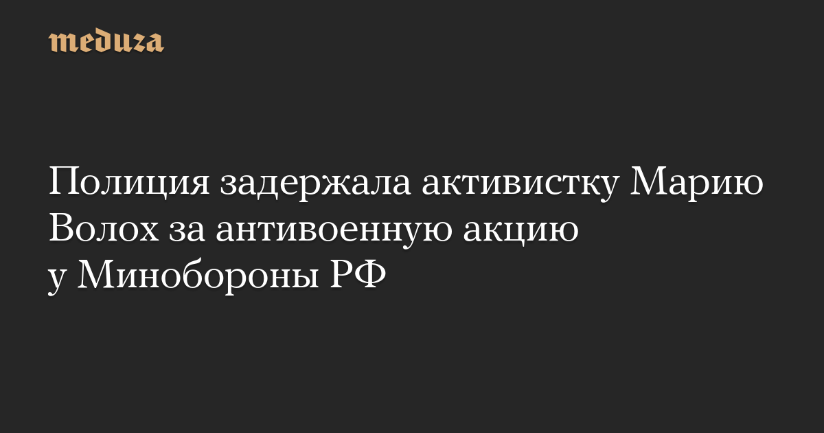 Сотрудники полиции задержали активистку партии «Яблоко» Марию Волох из-за антивоенной акции, которая прошла накануне у здания министерства обороны России. О задержании активистка сообщила в своем телеграм-канале.