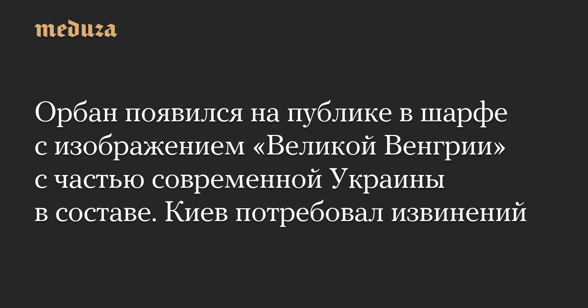 Орбан появился на публике в шарфе с изображением «Великой Венгрии» с частью современной Украины в составе. Киев потребовал извинений
