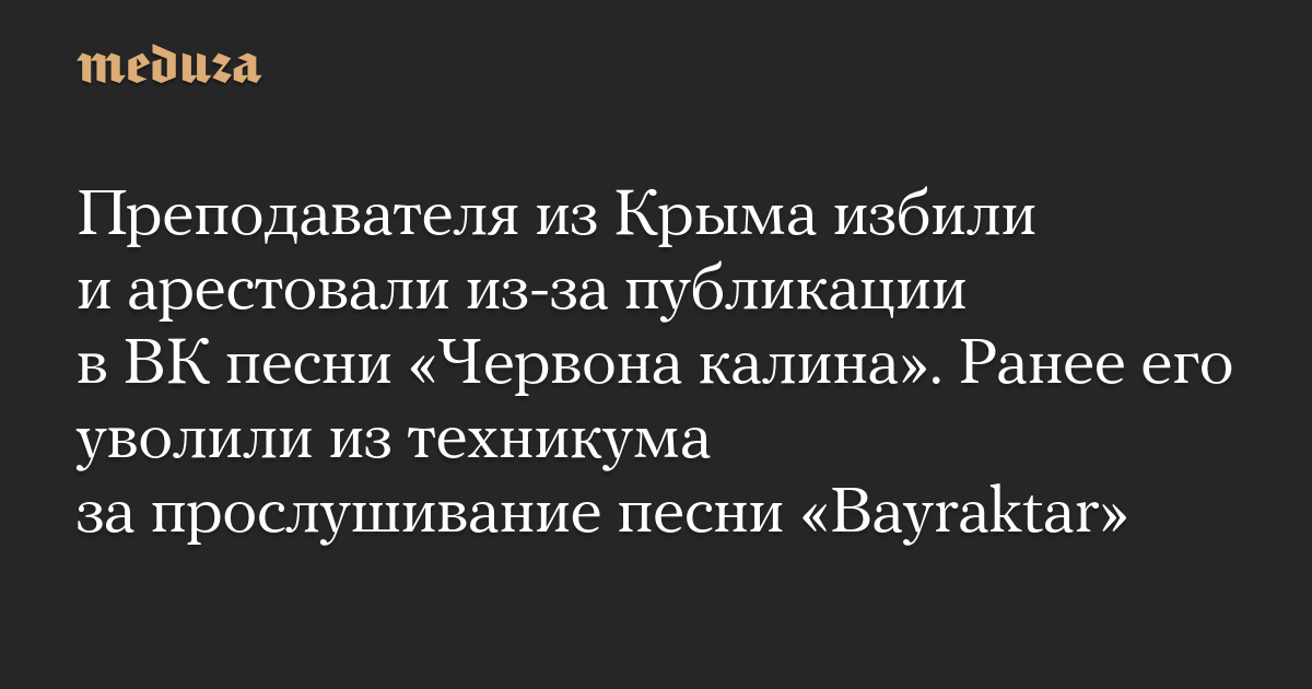 Преподавателя из Крыма избили и арестовали из-за публикации в ВК песни «Червона калина». Ранее его уволили из техникума за прослушивание песни «Bayraktar»